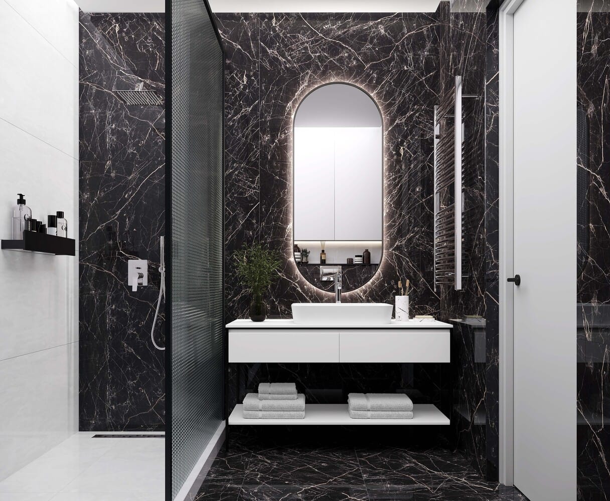 Элегантная коллекция керамогранита Black Arkadia повторяет мрамор Noir st Laurent. Выразительный рисунок из кружевных золотистых линий контрастирует с темной поверхностью. Зеркальный блеск придает цвету еще больше глубины и выразительности. Коллекция Black Arcadia выполнена с поверхностью глубокой полировки High Glossy.