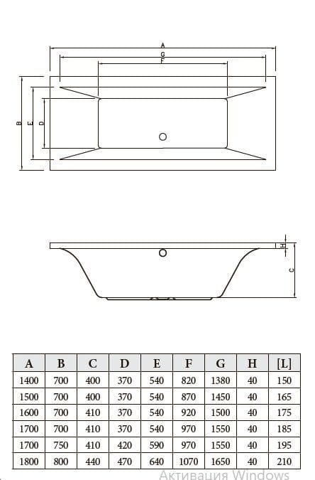| Форма ванны | прямоугольная |